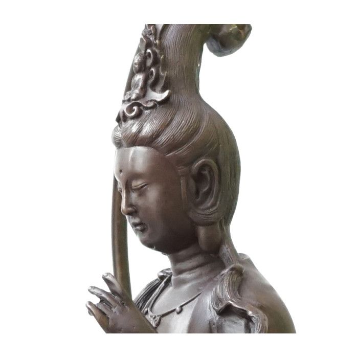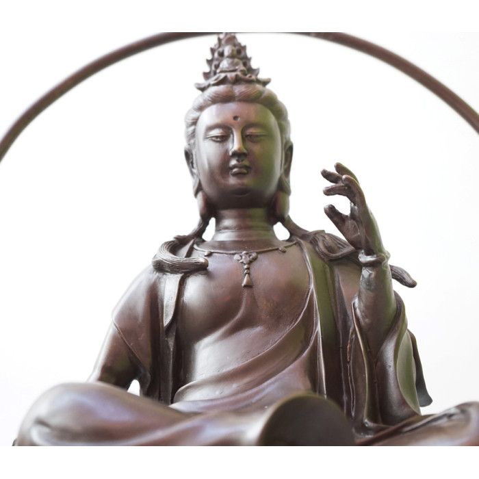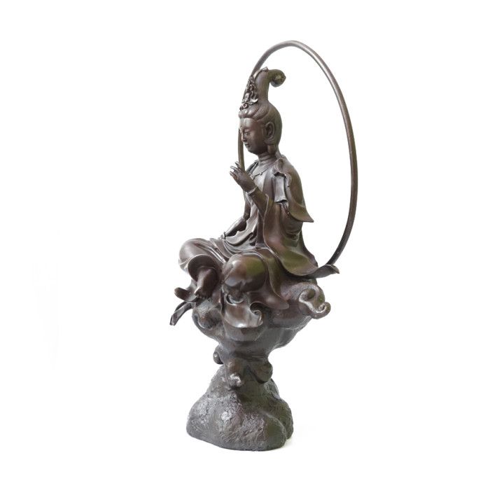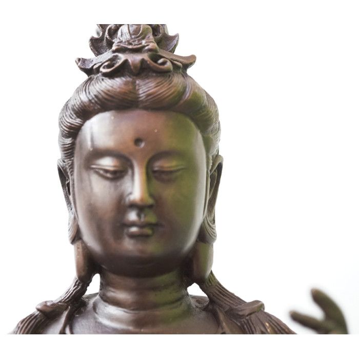 В Буддизме Гуань Инь почитают как сострадательную спасительницу, бодхисаттву милосердия. Гуань Инь — возлюбленная мать и божественная посредница, близкая к повседневным делам своих приверженцев, является буддистской Мадонной, чья роль на Востоке сравнима с ролью, которую Мать Мария играет на Западе. По всему Дальнему Востоку почитащие ее люди стремятся обрести ее помощь и руководство в каждой сфере жизни. Алтари, посвященные Гуань Инь, можно найти в храмах, домах и придорожных капищах.