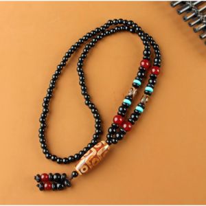 Браслет шесть коричневых трехглазых ДЗИ с кисточкой