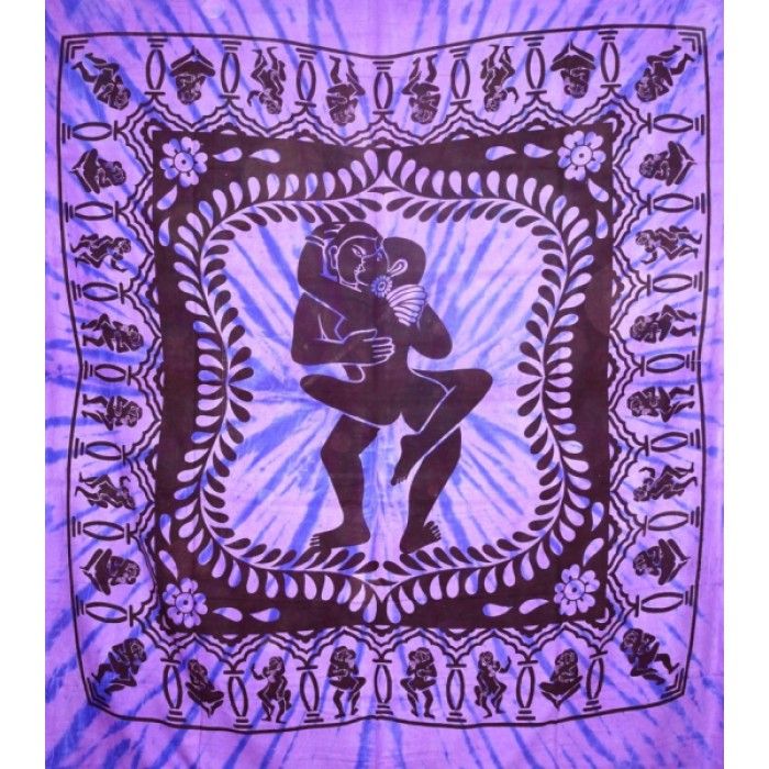 Покрывало из тонкого хлопка в этническом стиле Кама Сутра сиреневое однотонное