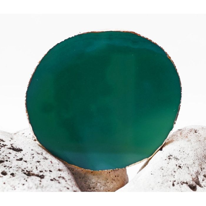 Срез агата с золотой каёмкой 8 - 10см. Зелёный
