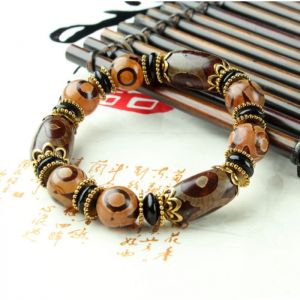 Браслет дев'ять коричневих триоких ДЗИ
