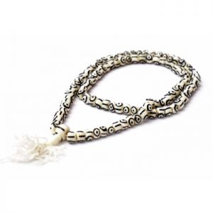 Чотки з кістки DZI білі + чорний малюнок 8мм 108 бус.