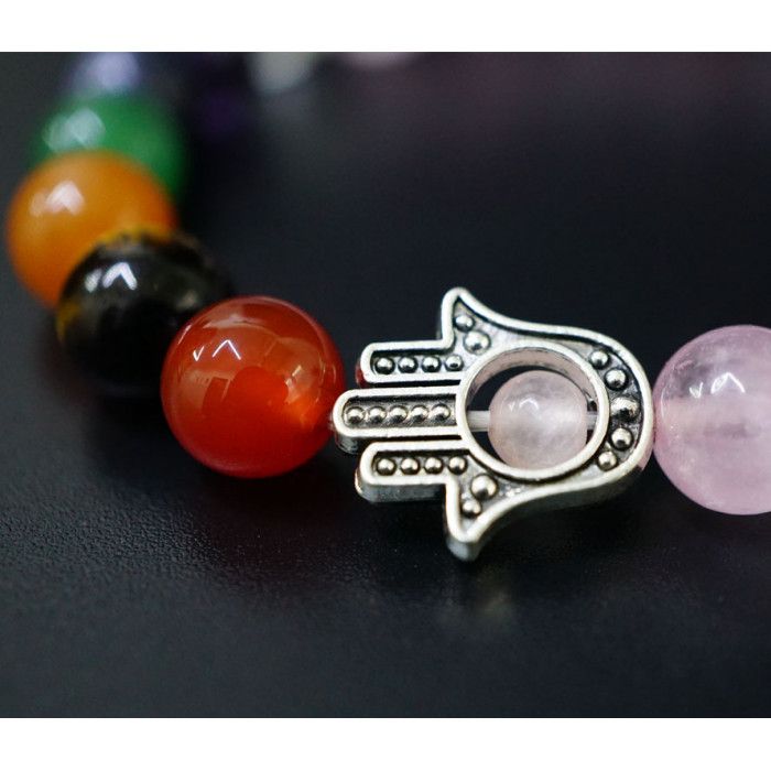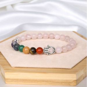 Браслет камінь + хамса Рожевий кварц 8мм ( 22 - 24 намистини)