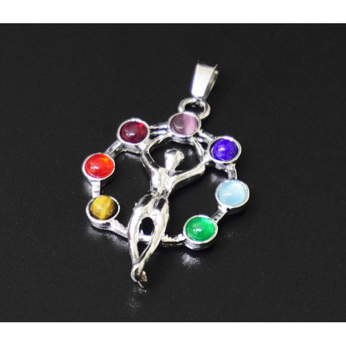 Кулон білий метал "7 чакр" Людина в колі