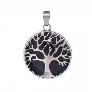 Кулон білий метал "Дерево Життя" вставка Чорний агат