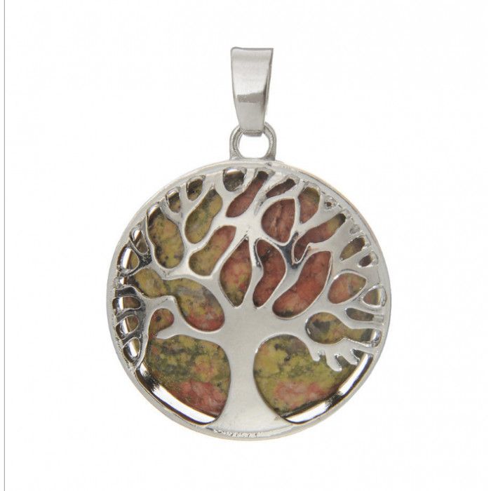 Кулон білий метал "Дерево Життя" вставка Зелена яшма