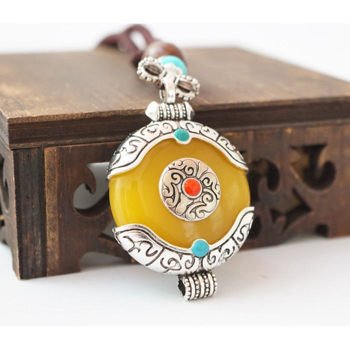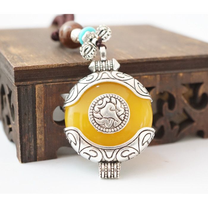 Тибетський амулет Мелонг - це традиційна захисна прикраса Тибету, яка служить для відлякування злих духів і залучення добрих енергій. Мелонг зазвичай має форму колеса, яке символізує шлях до звільнення від страждань та досягнення просвітлення.