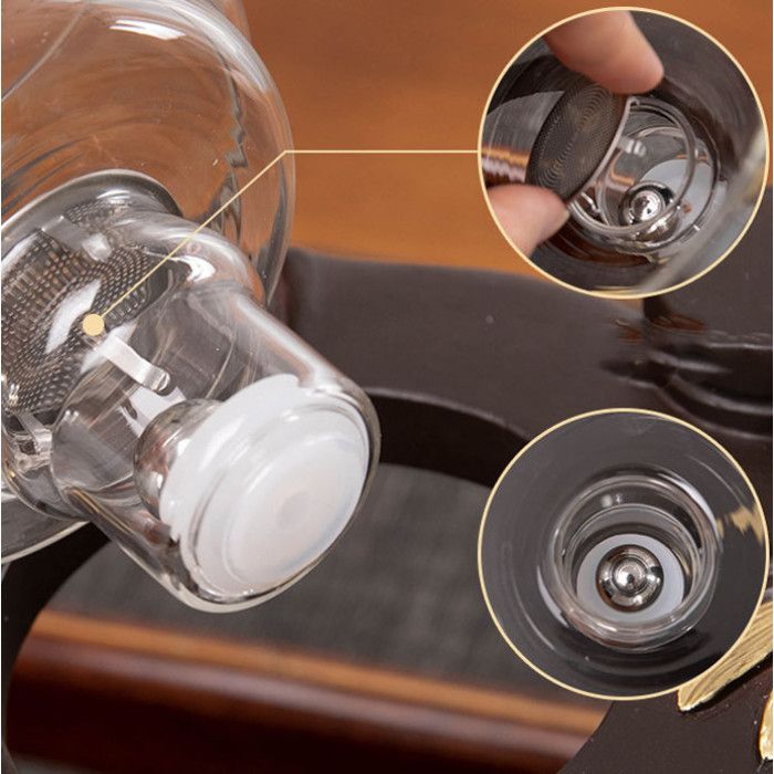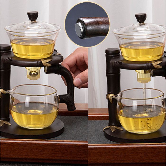 Верхня чаша (гайвань) містить магнітну кульку, яка відкриває/закриває отвір для витікання чаю в Чахай. У ручці Чахай кулька в огляді магніт, що приводить металевий рух.