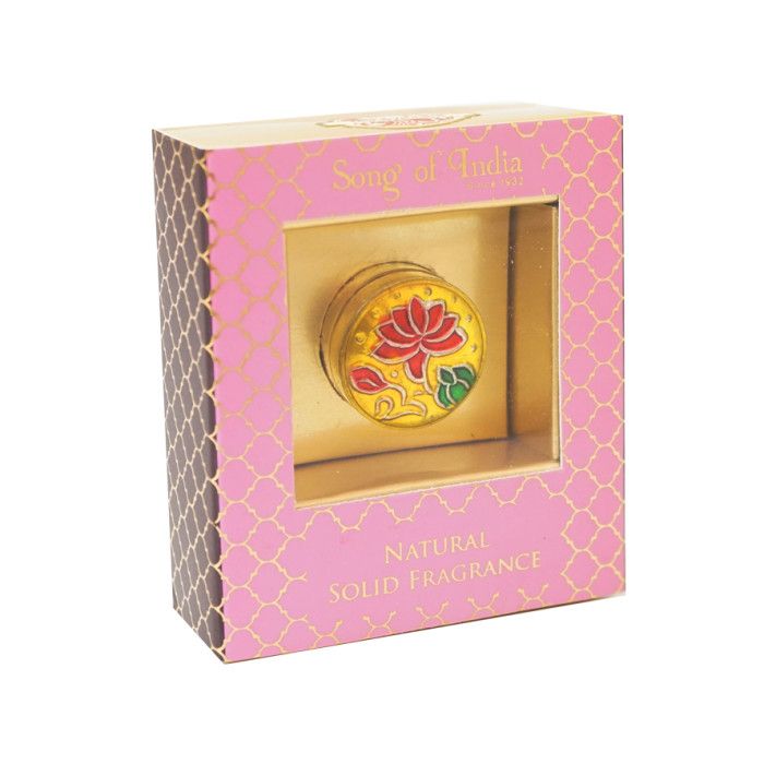 Сухие духи из Индии из твердого парфюмерного воска в красиво расписанной вручную баночке из латуни, которую вы сможете носить с собой куда угодно. Твердые натуральные духи Song of India — отличный способ всегда держать при себе любимый аромат, особенно в поездках. Хранится парфюм очень долго, не теряя своего запаха.