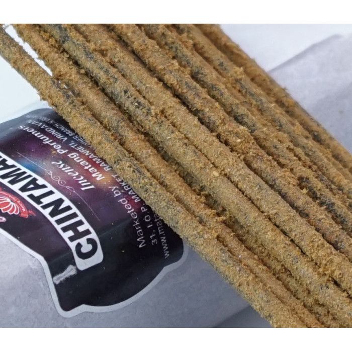 Пахощі Chintamani склад Опіум, Кава, Мигдаль і Ялівець - аромат паличок Чинтамані можна описати як класичний індійський - солодкий, тягучий, але бездоганно приємний! Індуси вважають, що така комбінація ароматів сприяє психологічному спокою, захищає вас і ваш будинок від темних сил, повертає молодість, прояснює розум, прибирає страх, покращує інтуїцію.