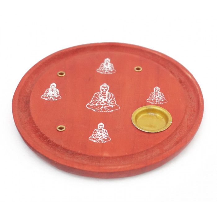Підставка під аромапалички і конуси з дерева манго Тарілка Будда Червона