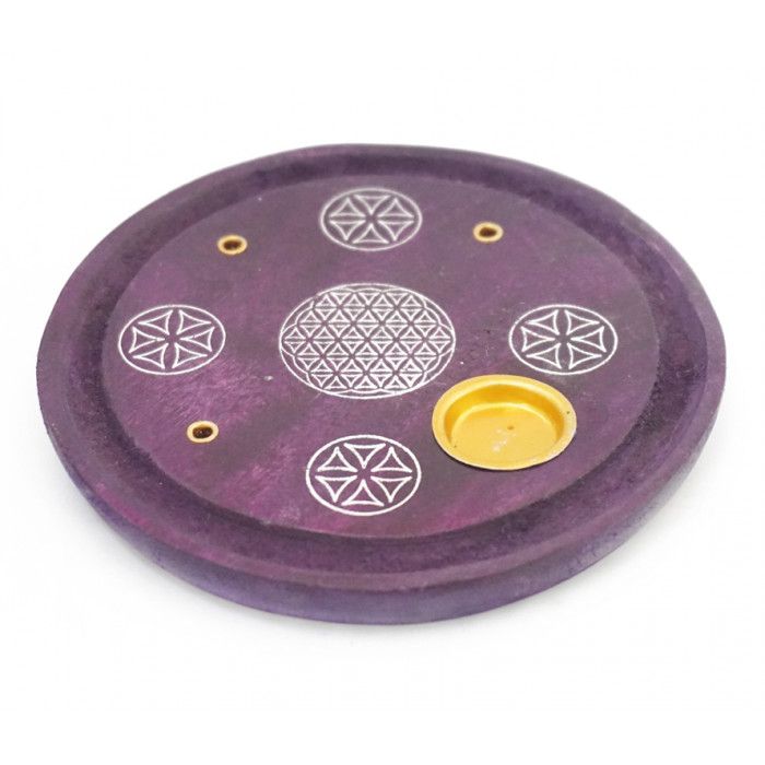 Підставка під аромапалички і конуси з дерева манго Тарілка Квітка життя Фіолетова