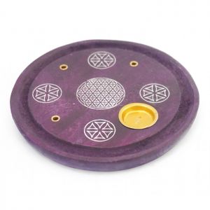Підставка під аромапалички і конуси з дерева манго Тарілка Квітка життя Фіолетова.