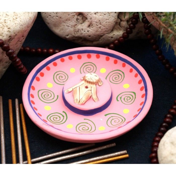 Підставка під аромапалички терракот Тарілка Мавпочка Рожева